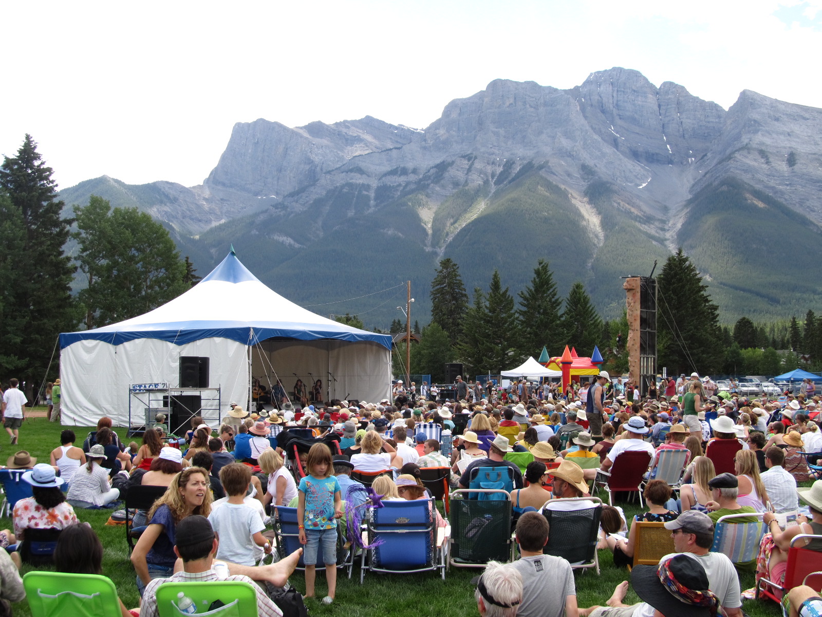 Spent the afternoon at the Canmore Folk Festival. Cloud clusters skimmed the peaks of the majestic Rockies and danced across the face of the sun, poring relief upon the baking multitudes below. We picked up our gear and shuffled lazily between stages two or three times, the highlight for me the humour and hopeful heartbreak of Steve Seskin.