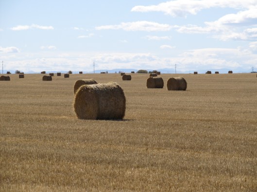 These round bales reminds me of the corny old tour bussing joke when in answer to a question about them I’d ramble seriously upon livestock diet, and then slap them with the groaner about a debate raging over three square meals or a more rounded diet.